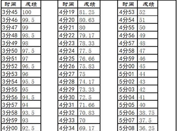 中考体育成绩对照表及解析