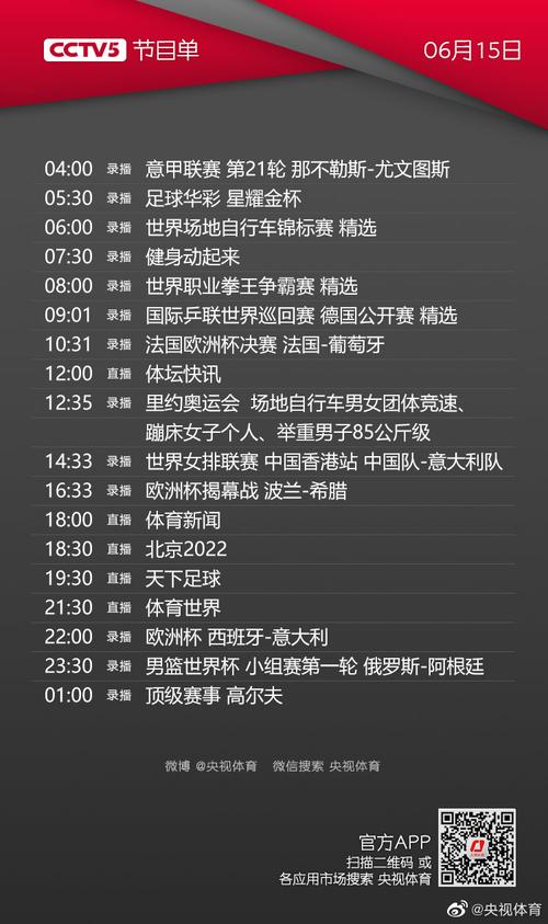 中央电视台体育节目表:让您不错过任何一场体育赛事