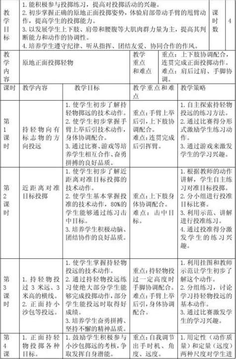 小学四年级体育计划表怎么写