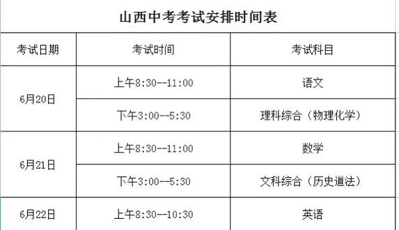 运城体育中考考试时间安排
